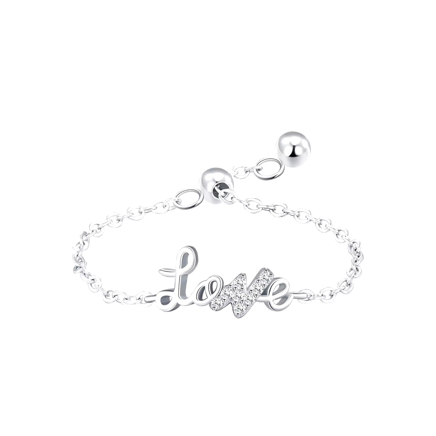 This ring, with its delicate chain and the word "Love" shimmering with tiny, sparkling stones, feels like an embodiment of tenderness and hope. The elegant design radiates warmth and affection, evoking feelings of connection, caring, and the gentle power of love that binds us. Wearing this piece can stir a sense of comfort and joy, reminding us of moments when love has touched our hearts—whether in quiet acts, shared smiles, or heartfelt promises. It’s more than jewellery; it’s a symbol of the enduring, luminous beauty of love that lifts us and makes life brighter.