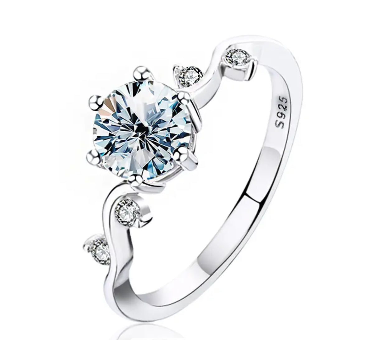 This ring radiates a sense of elegance and timeless beauty, capturing the eye with its delicate sparkle and intricate design. The central stone, a brilliant round diamond, symbolizes clarity and enduring love, while the surrounding smaller stones evoke a feeling of celebration and hope. Its sleek, polished silver band feels like a quiet promise—something precious and lasting. Wearing this ring might stir feelings of joy, commitment, and the profound beauty found in life’s most meaningful moments. It’s more than jewellery; it’s a heartfelt symbol of love and promise, shining softly yet powerfully, reminding us of the preciousness of connection and the timeless nature of true devotion.
